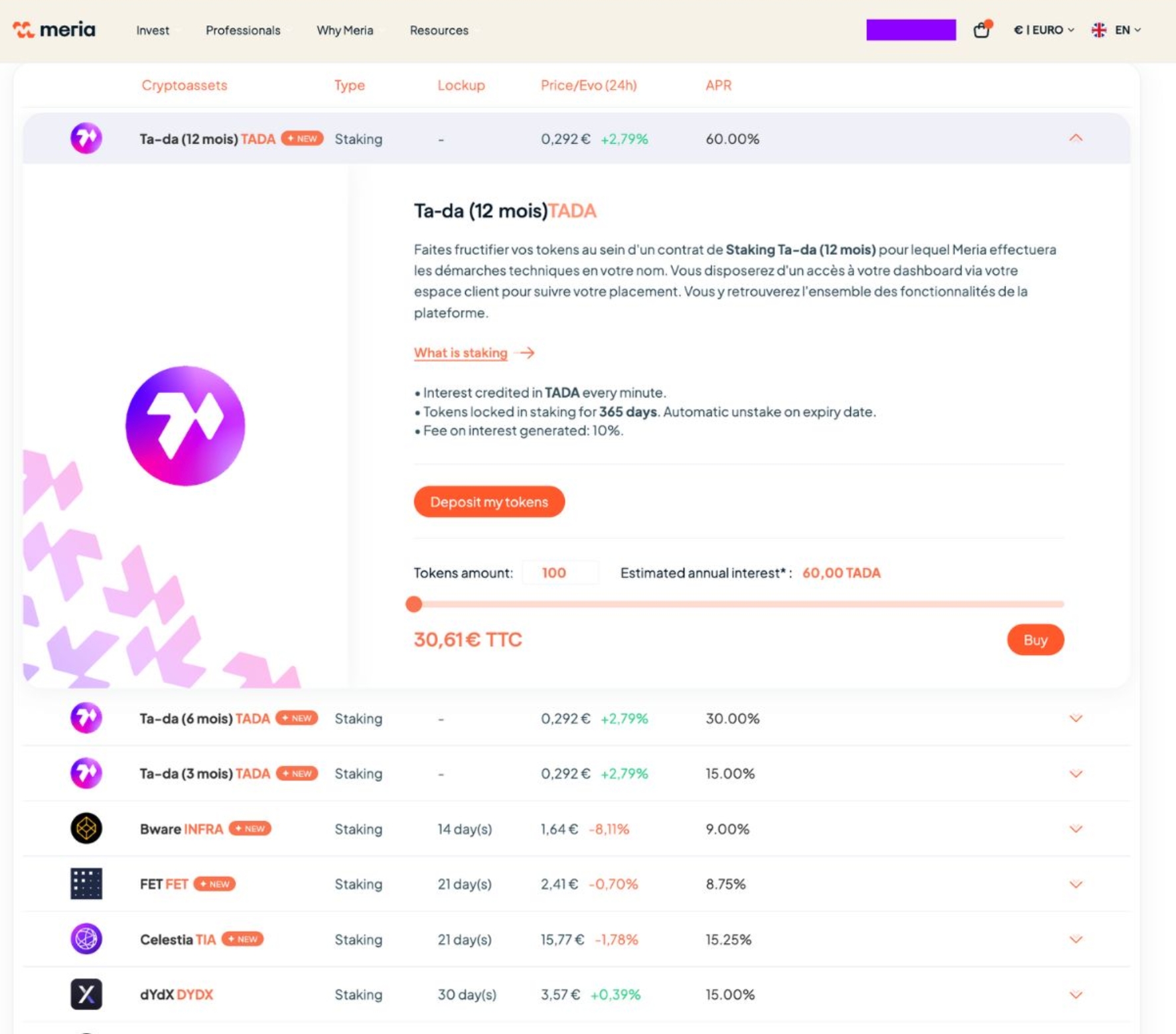 In order to access those pools, users can either buy tokens directly on Meria or deposit their own tokens on the platform.